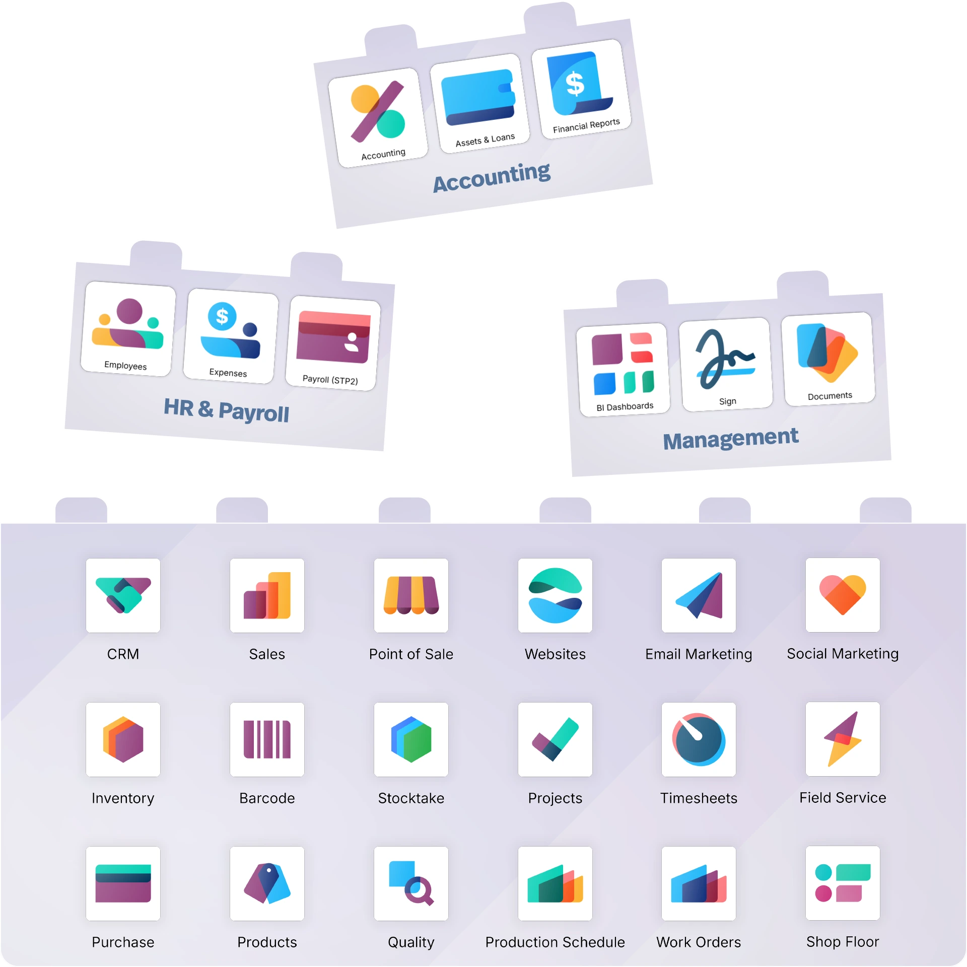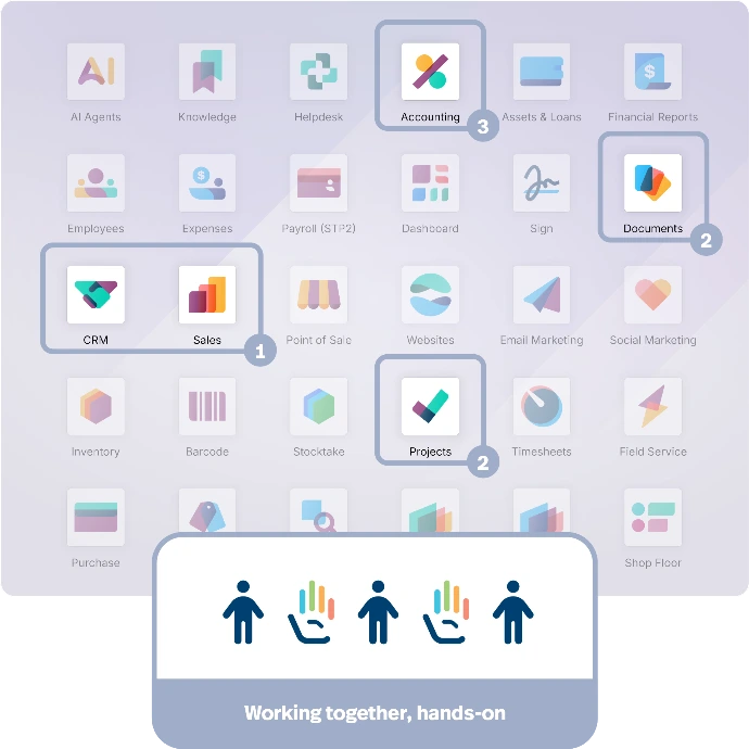 Revolutionise every aspect of your business with Odoo's extensive ecosystem of business applications, guaranteed to work together. Simply mix-n-match apps to build a powerful solution for your business - it's like LEGO® for business.