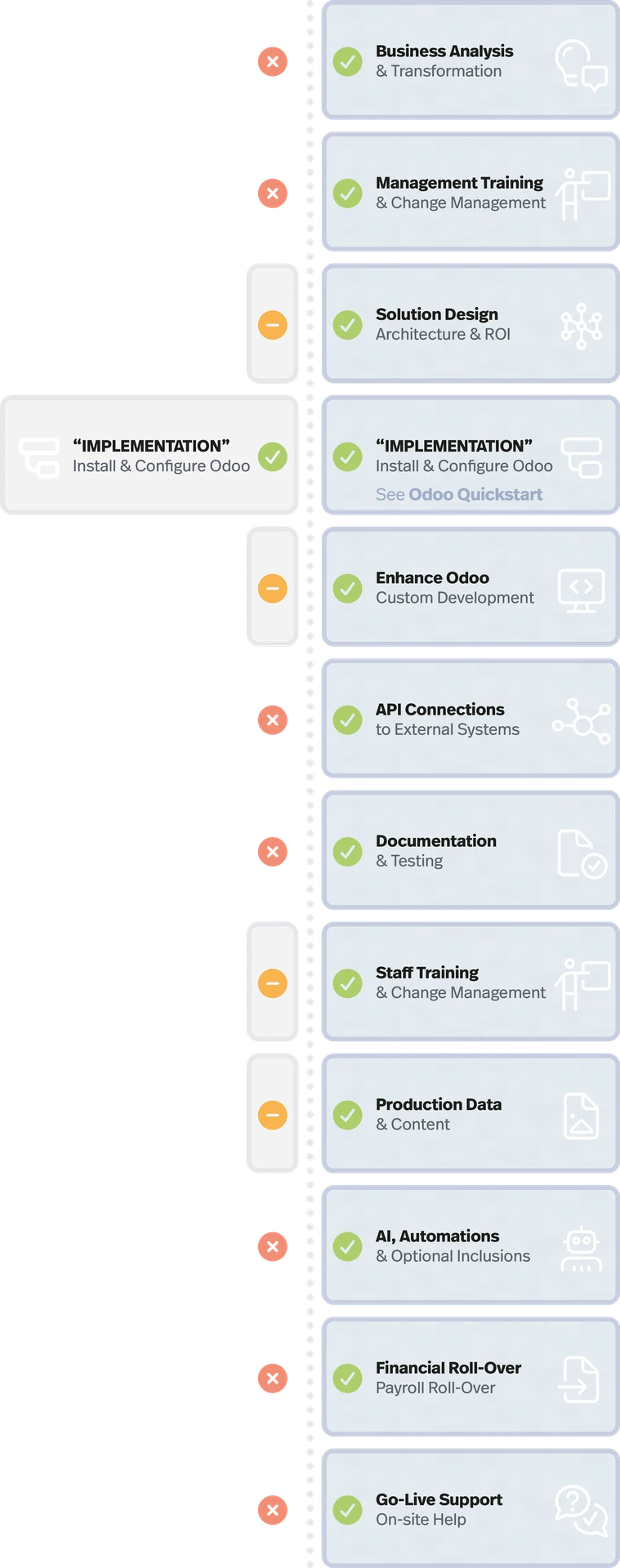 From rapid deployment to full-scale business transformation, our implementation pathways are designed to meet your specific operational needs and budgetary constraints. We provide the expertise to ensure your entry into the Odoo ecosystem is efficient, scalable, and strategically sound.